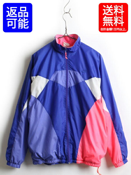 90's 初期 銀タグ ■ NIKE ナイキ フルジップ ライナー付き 切替 ナイロン ジャケット ( レディース 女性 M ) ジャンパー 古着 90年代 青| 【USA古着】 中古 ナイロンジャケットマルチカラー ブルゾン スウッシュ スウォッシュ ブルー ホワイト ピンク マルチ メンズ S 程